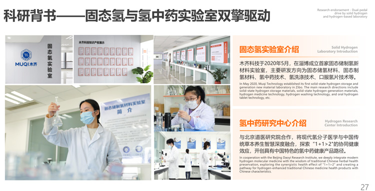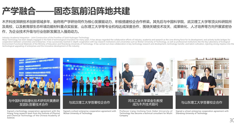 木齐科技自2015年成功研发富氢水瓷材料起步,2019年建成国内首家固态储制氢新材料实验室,2021年建成氢产品创新中心。截至目前,已获得37项国家授权专利,备案多项企业标准,构建起以镁基、硅基、钙基材料为核心的固态氢技术体系。