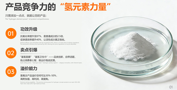 为日化产业:在传统手工皂、漱口片、洗发皂中添加HI氢素,增强功能性附加值。