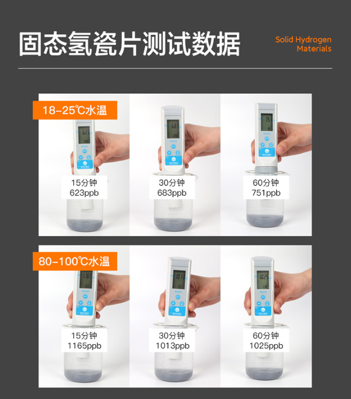 ORP是衡量水还原能力(即抗氧化能力)的关键指标。普通自来水的ORP通常在+200mV到+400mV之间,呈氧化性。而加入富氢瓷片后,水的ORP可降至-689mV(强负电位),意味着水中富含大量活性氢,能有效清除体内多余的自由基。