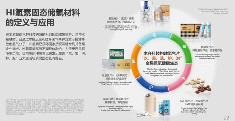 从口服氢气片到氢面膜,从富氢手工皂到卫生巾,从足浴氢片到农业制剂,HI氢素展示了一种“平台型技术”的惊人延展性。随着固态氢材料的持续迭代和场景拓展,“氢健康生活”将从概念走向现实,成为亿万人群主动健康管理中不可或缺的一部分。
